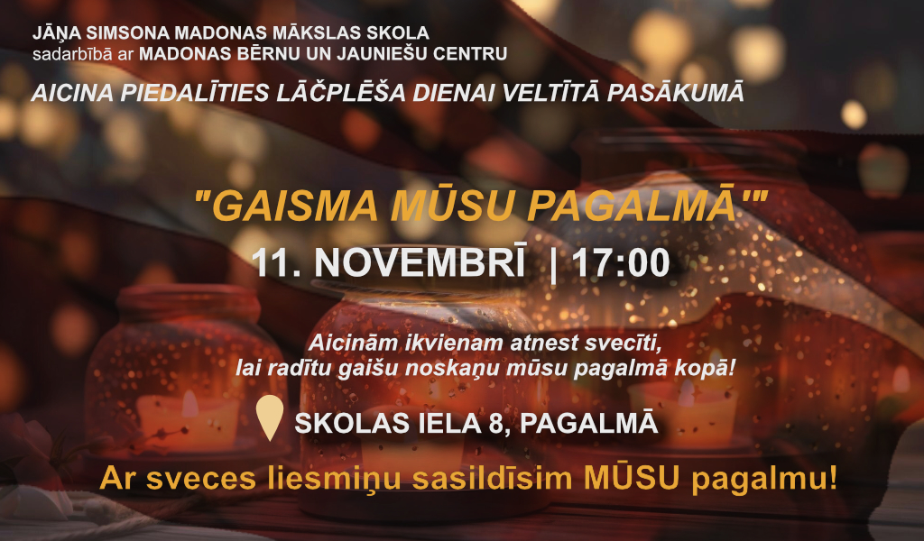 Jāņa Simsona Madonas mākslas skola sadarbībā ar Madonas Bērnu un Jauniešu centru Lāčplēša dienai veltīts pasākums “GAISMA MŪSU PAGALMĀ”